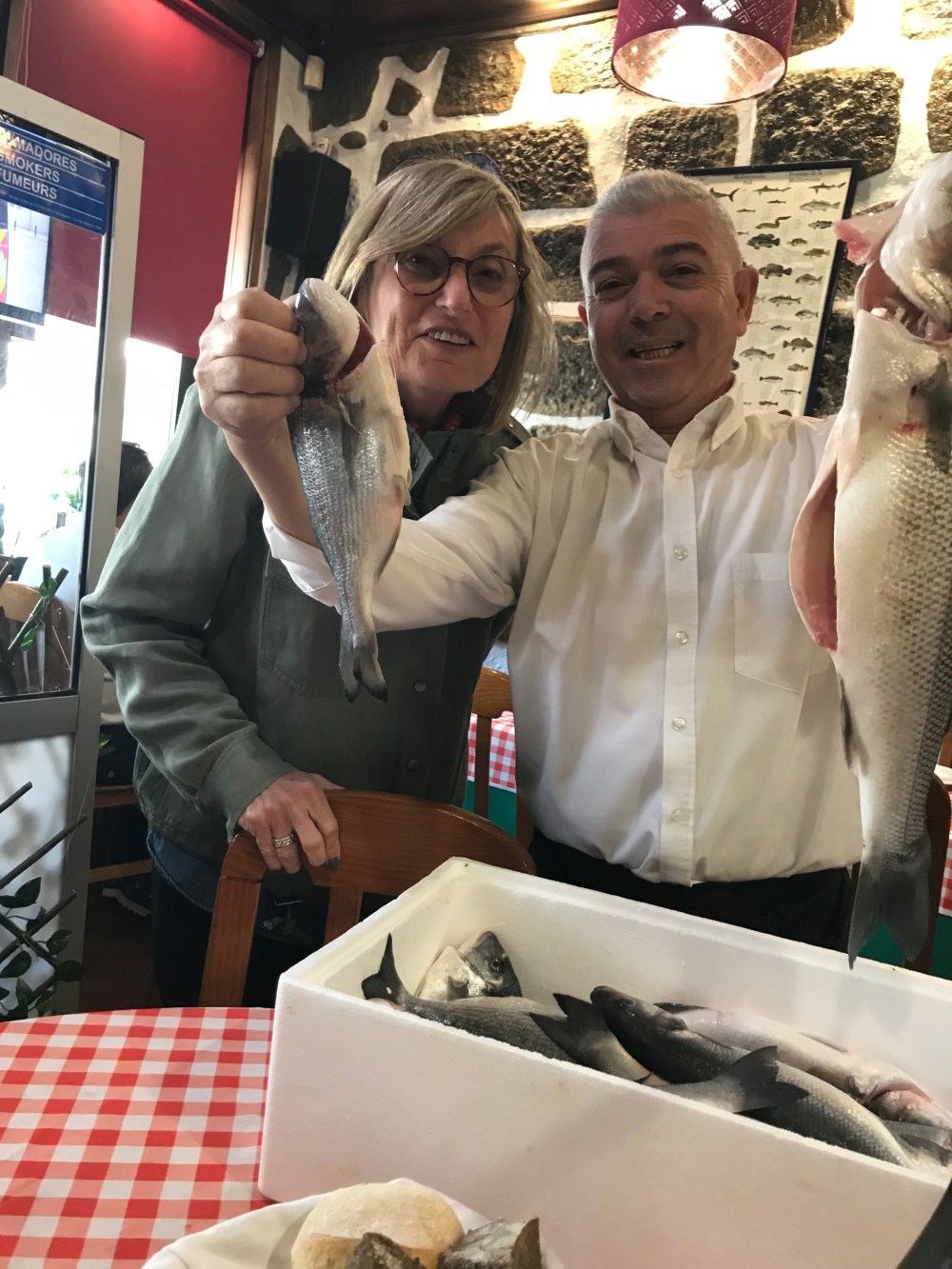 I don’t make this stuff up. He went thru the box of fresh fish and picked out our lunch. He spoke no English and we no Portuguese. Somehow we all figured it out. Fun!