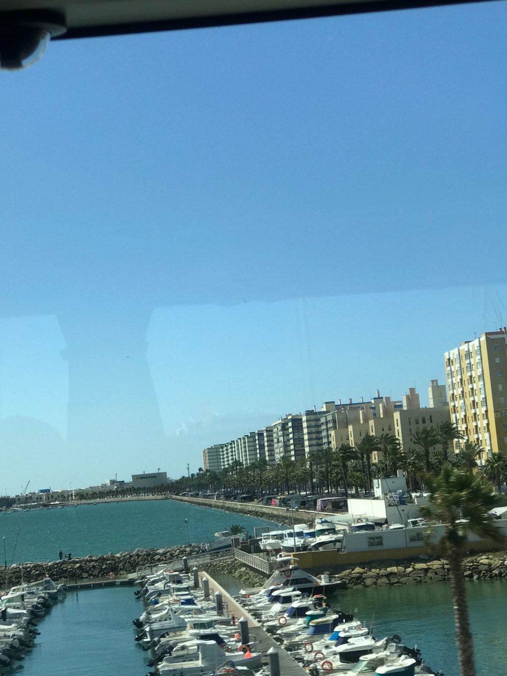 I know this is a shitty pic but taken from bus, best I can do. Cadiz is a peninsula bay on one side, ocean on other.