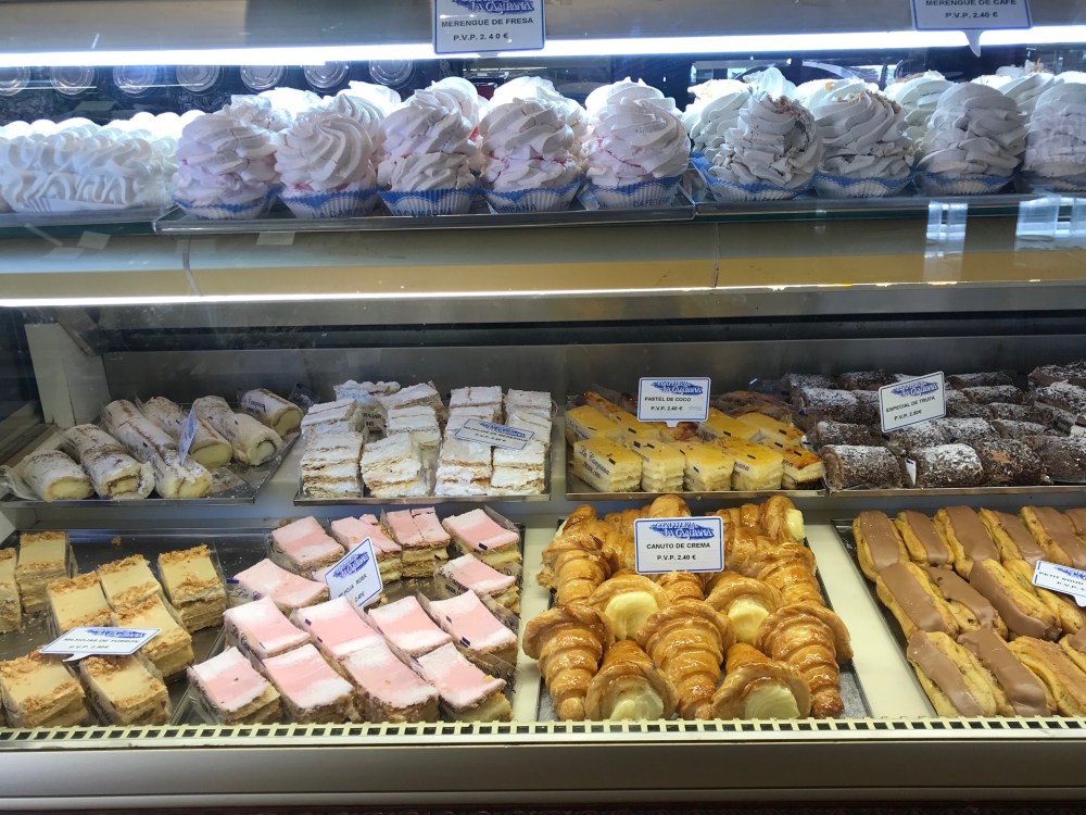 For lunch a Starbucks cold brew and a small marinated orange. Seville is know for their orange trees all over the city. But you cannot just pick one to eat, very sour and will cause a stomach ache. What to do with all these oranges, leave it to the Spanish to make something really delectable. They take small oranges and marinate in sugar and who the hell knows what else. We pass by this ornate bakery, stand up cappuccino bar filled with people eating and yes drinking in the middle of the afternoon. No wonder everyone here needs a nap. So would I if I drank at 2 in the afternoon!! Anyway getting back to the bakery, its from the 1800’s original and how could we resist trying what Seville is famous for. By god this orange was not too sweet but filled with the juice I mean next level and with a very cold ice coffee perfect strolling lunch! Who needs Jamon. Worth it!!