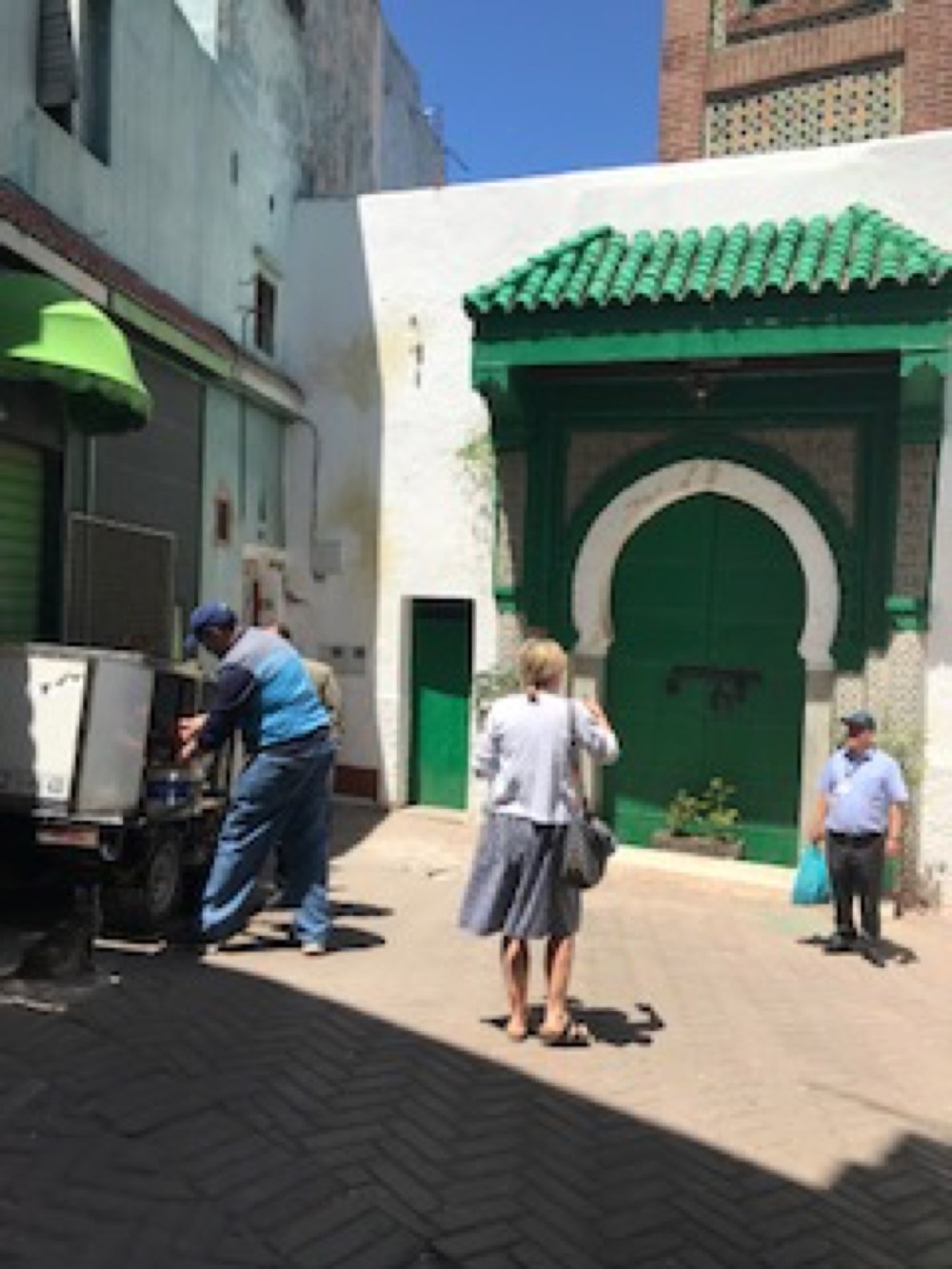 Me in front of a Mosque that is quite beautiful. There are many in the Medina and by the way the Kasbah is the highest point within the walled city.