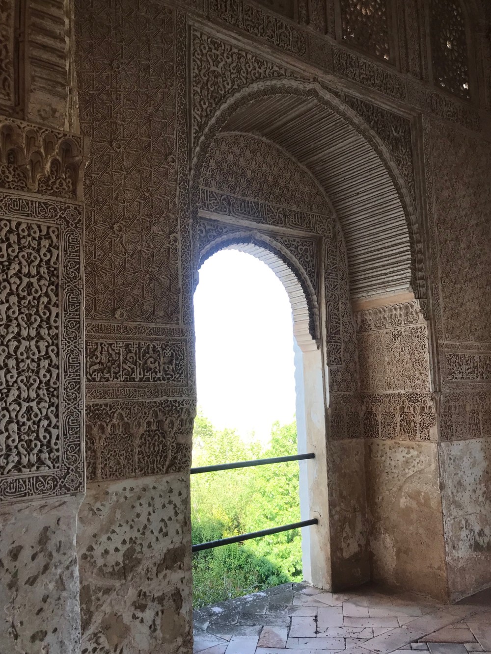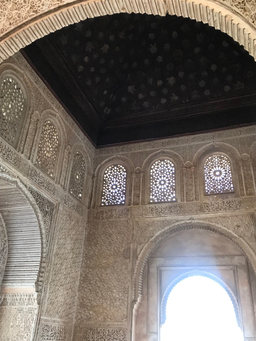 The first palace was for worship. Every surface was decorated to the max. Particular attention to the ceiling, although most of the colors are gone there are places you can see how vibrant Alhambra was.