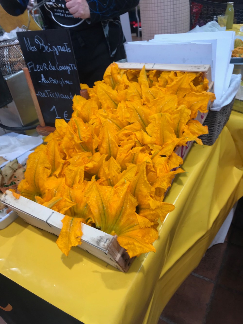 Homemade quiches, spinach, goat cheese, broccoli you name it. And the second pic is zucchini flowers fried. I never saw such large ones.