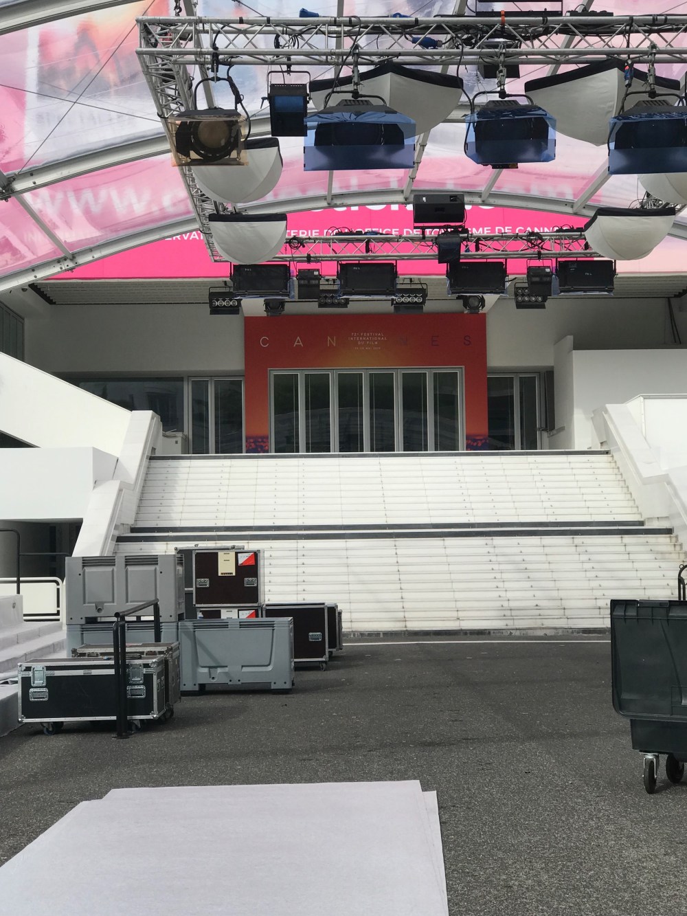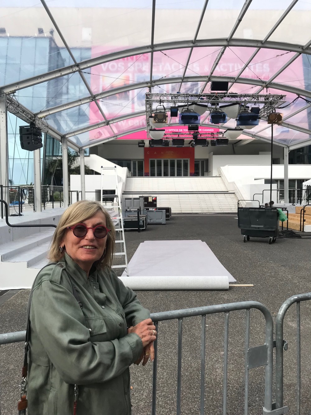 Drey made it to the Cannes Film Festival which starts next week. I am standing in front of the exposition center that shows the festival, and in front of the steps and down to the street is the red carpet. It gets changed every day.