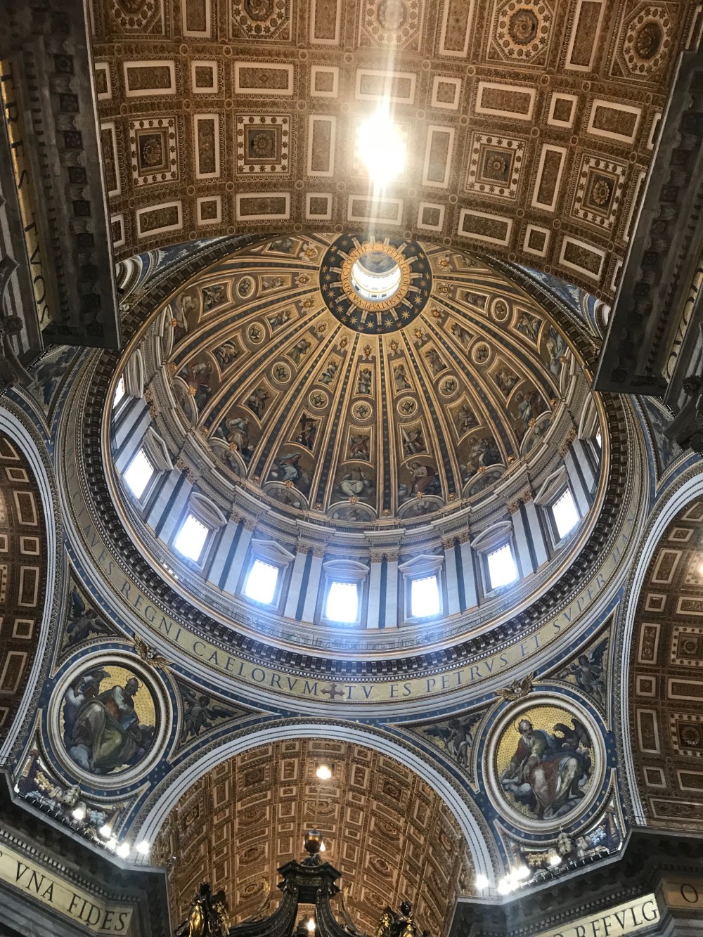The cupola was designed by Michelangelo which he did not live long enough to finish it. His work is up to the windows. You can climb up to the top but I lost count on how many stars. Built in 1506 it is in the smallest country in the world. It has its own postal system, laws, communication and is home to 800 people. Most work for the church.