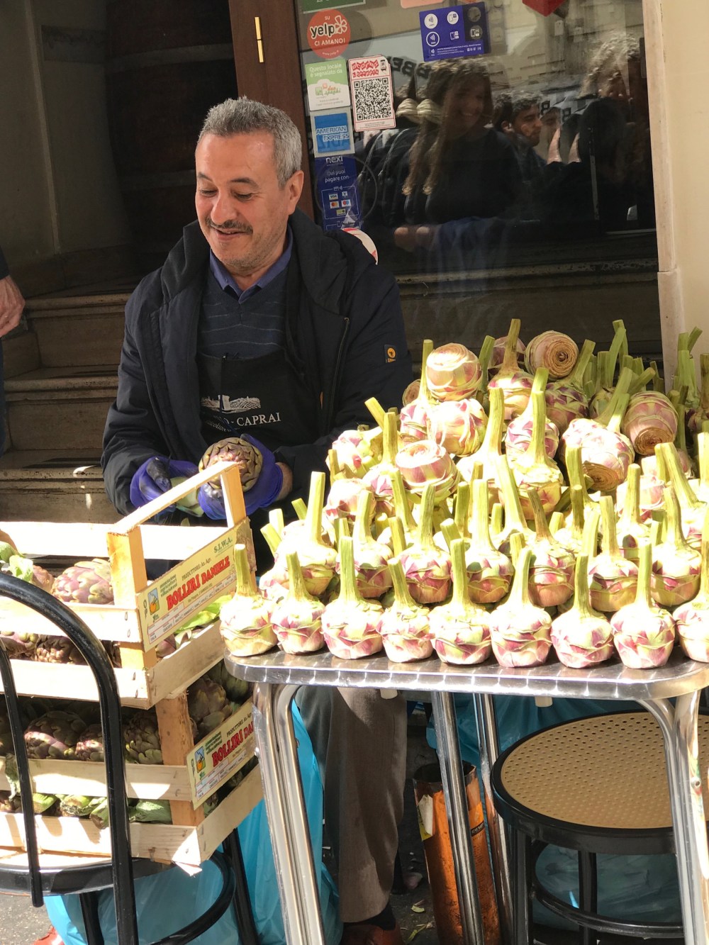 Kosher restaurants, tiny streets off a piazza and the famous fried artichokes. This man sits most of the day peeling them. What a job! And there is a pic of Anthony Bourdain in front. His fav spot for artichokes. There is still a small Jewish community here, nice to know.